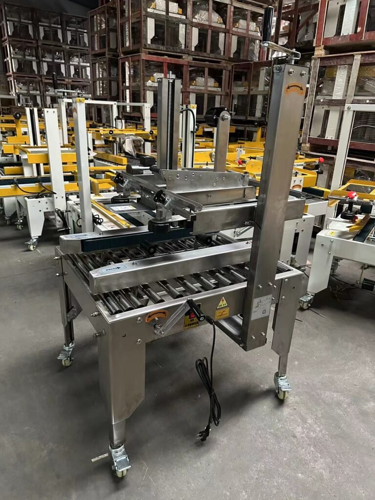 A fully automatic carton sealer handles flap folding, sealing, and ejection without manual intervention. It integrates seamlessly with conveyor systems, case erectors, and palletizers, making it ideal for high-speed production lines.